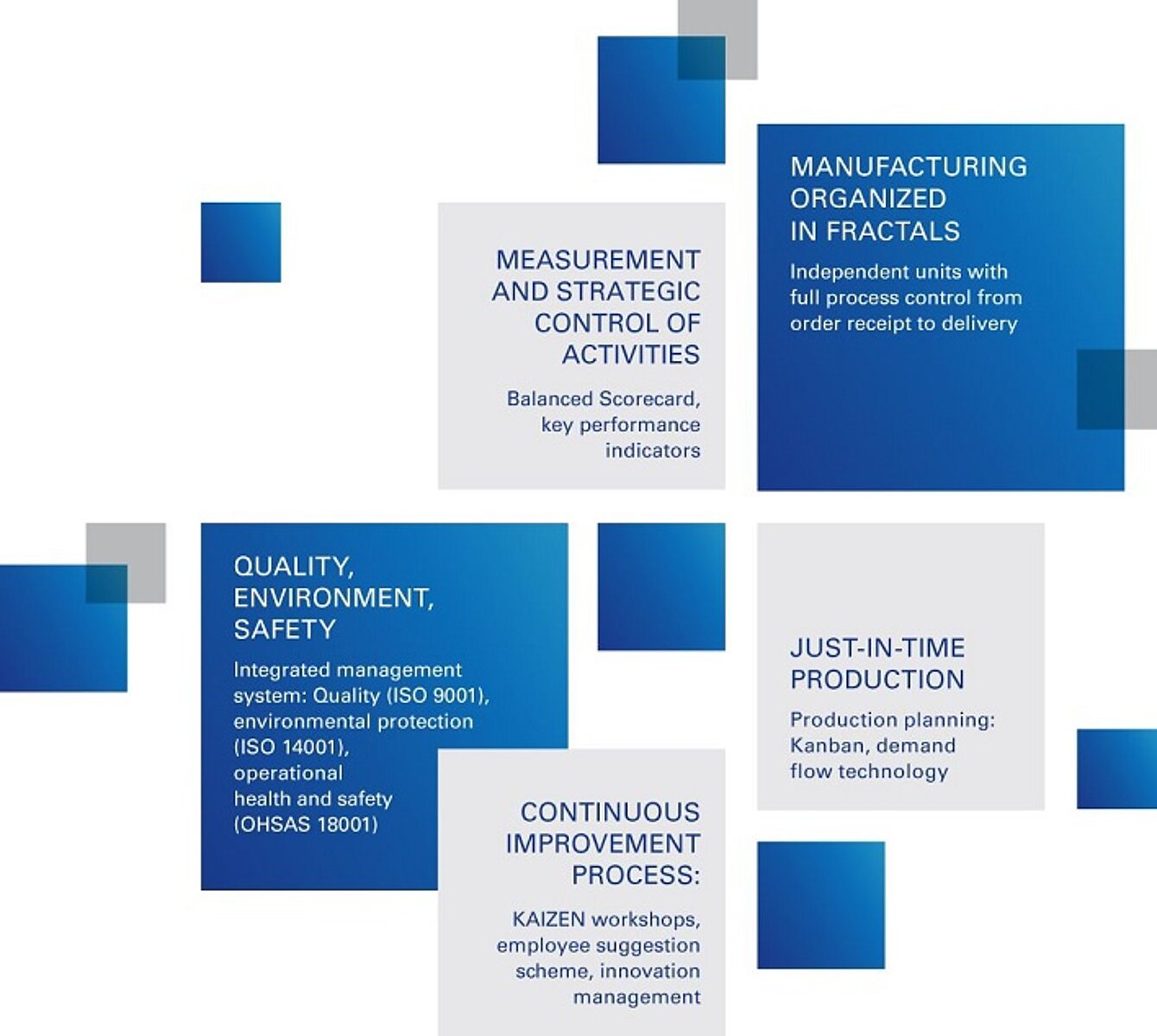 PIグループは、世界の各施設で、高い品質、安全性、環境保護基準を同じように適用しております。統合管理システム(IMS) は、この取り組みを反映しており、PI社は、組織内のすべての品質管理、環境管理、作業、健康管理をISO 9001、ISO 14001、ISO 45001、REACH規則などの国際標準の仕様に準拠しようと取り組んでいます。要件へのコンプライアンスは、IMS内で文書化、確認、監視されています。IMSのシナジーを利用することで、PIグループは、プロセス、製品、サービスを効率的かつ継続的に改善することができます。