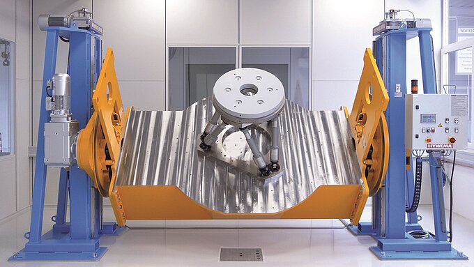 - 耐荷重5トンの持ち上げ傾動装置では、その用途専用のアライメントおよび荷重を用い、任意の角度でポジショニングシステムの性能を確認できます。