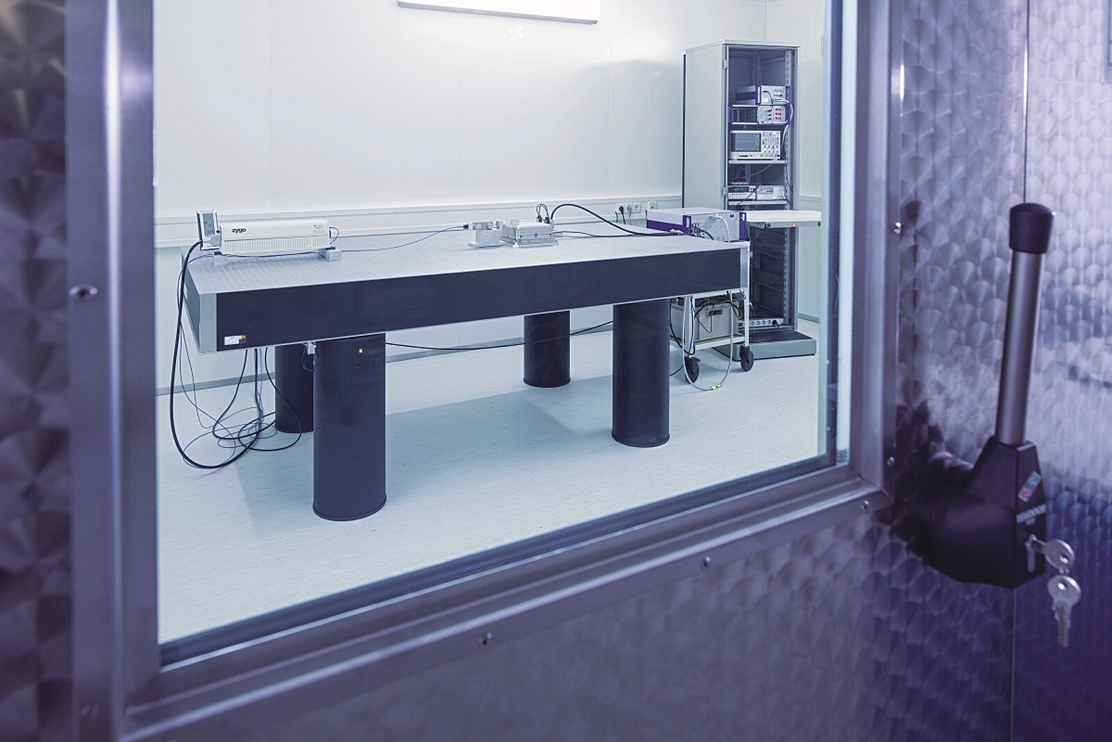 - 精密な測定は、振動から隔離されたハニカムテーブルで行っています。測定環境とセットアップは、対応する製品ラインの要件に適合しています。