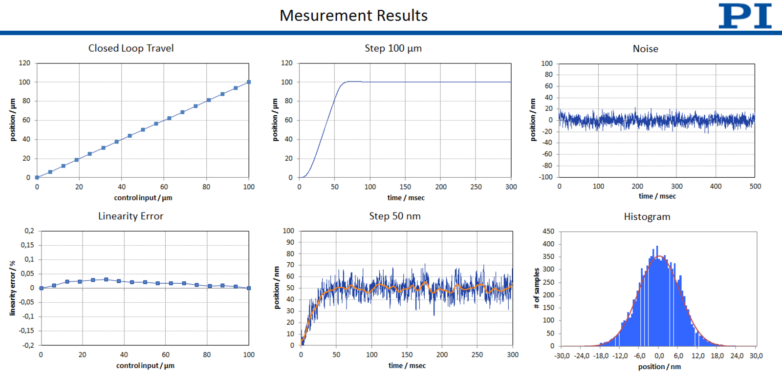 測定ログは、ヘキサポッドやピエゾシステムなど、多数のシステムで提供されます。したがって、お客様は発送の前に、測定データを見て、システムのパフォーマンスを検証すると同時に、同梱されるシステムコンポーネントを確認することができます。