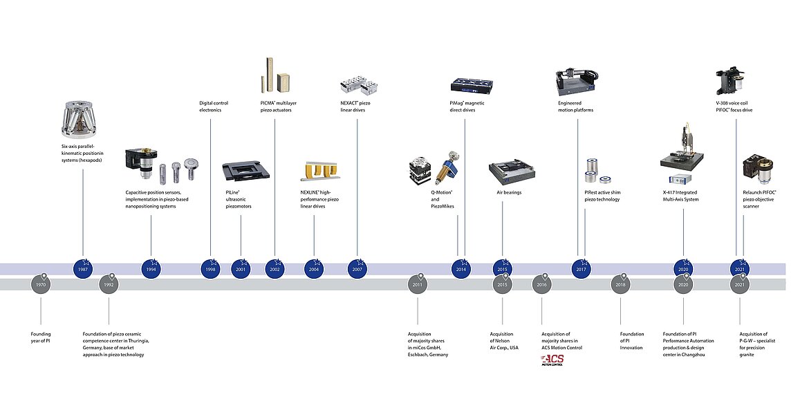 During the course of these decades, PI has developed from a specialist for piezo technology to a multi-technology provider – with a technical portfolio that is second to none. Targeted acquisition and start-ups have enabled PI to build a global network of specialists and, with over 1,400 employees, serve customers worldwide. Recently, we opened a new production facility in China. And the best thing is: PI also relies on continuity and reliability despite all of the innovation: At the beginning of 2020, Dr. Karl Spanner handed over the management to his son and successor Markus Spanner as planned.