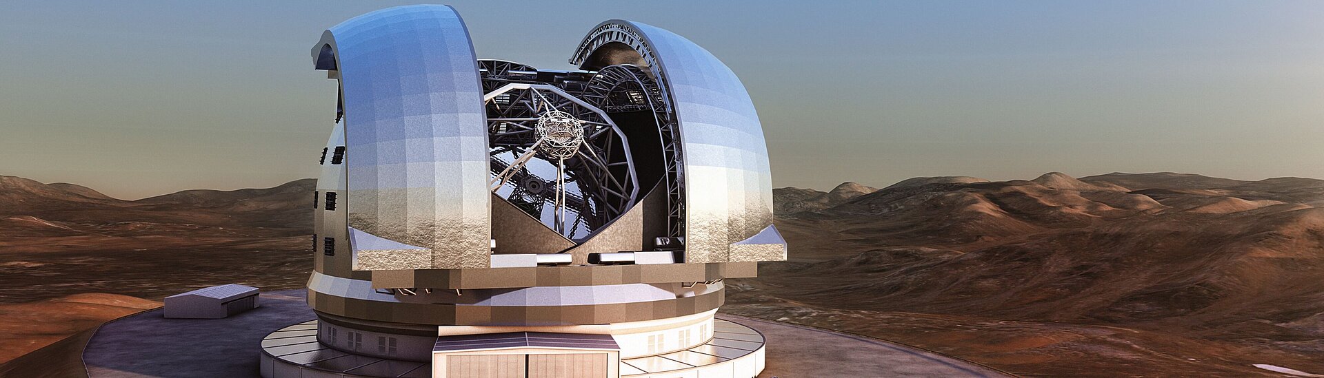 ヨーロッパ南天天文台(ESO)の欧州超大型望遠鏡(ELT)は直径が39 m、集光面積が約1,000 m²の分割型の主反射鏡を備えた、可視および近赤外線波長範囲の電磁放射を科学的に評価するための最大の望遠鏡です。この望遠鏡は2024年中に、チリのアタカマ砂漠にある標高3,046mのセロアルマソネス山頂で稼働を開始する予定です。この望遠鏡の最も重要な役割は、太陽系の外に位置する太陽系外惑星についての調査を支援することです。
