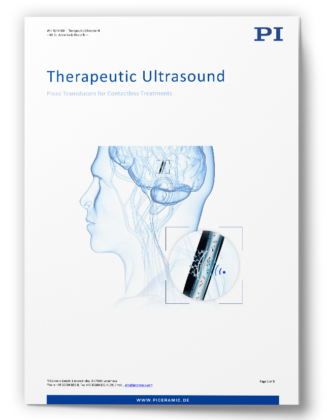 超音波は、確立されたイメージングの分野を超えて、医療技術においてますます重要になってきている汎用性の高い技術です。特に外科手術では、音波の力を利用して、いわゆる無切開手術を行うことができます。圧電トランスデューサはこの目的に最適です。体外に設置された圧電トランスデューサは、超音波の焦点を体の中に投影します。音波によって生成された音響エネルギを吸収することで、組織領域をターゲットに合わせて操作することができます。例えば、癌性の腫瘍を破壊したり、低侵襲的な方法で非接触のドラッグデリバリーを強化したりすることができます。