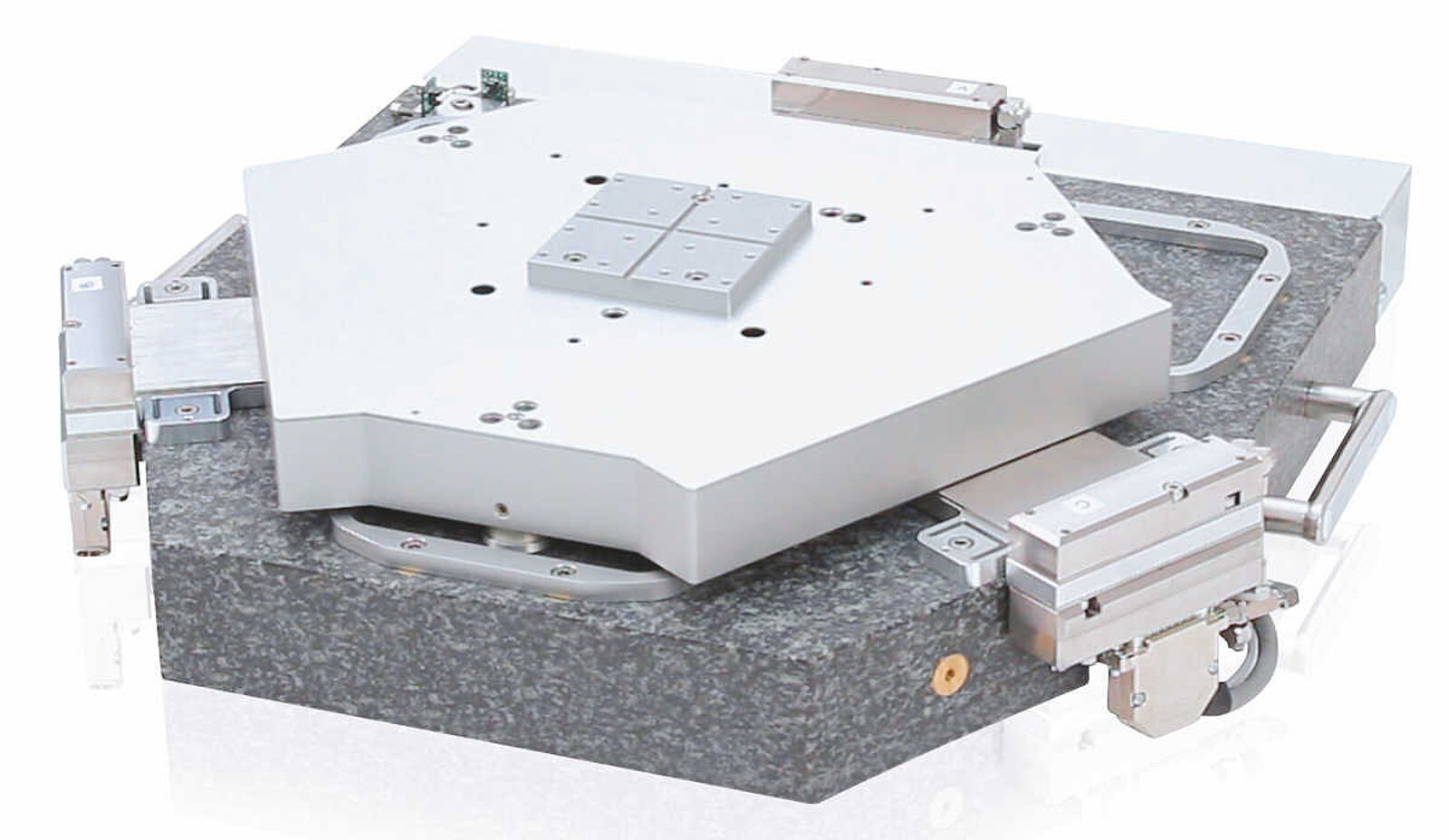 高精度位置決めシステムの新たな展望であるPIMag6-Dは、磁気ドライブと6次元センサーを備えた平面位置決めシステムの試験モデルです。本システムでは、6つのモーション軸方向すべてにおいて目標経路からの偏差を検出し、補正できます。