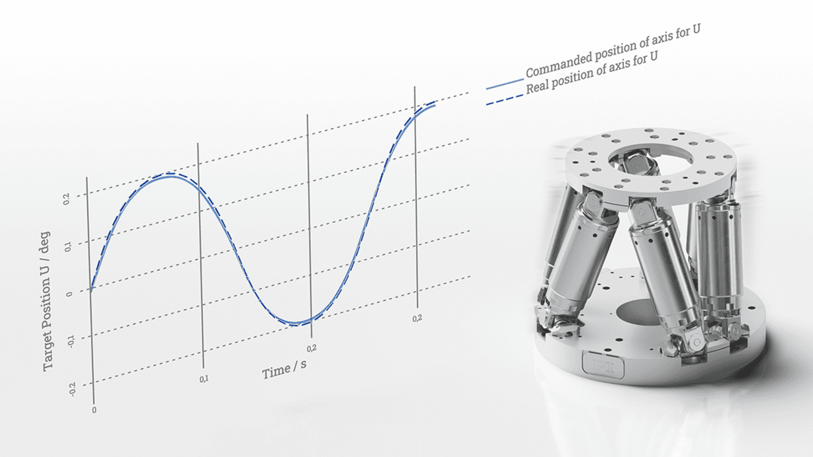 パラレルキネマティック方式のヘキサポッドは、高い剛性を特徴とします。 このため、外力が加わってもヘキサポッドの性能に影響はありません。 可変力を加えられた場合でも、必要とされる位置を維持することができます。