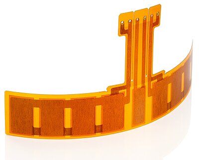 オートクレーブの硬化温度は、各使用材料の熱膨張係数からピエゾセラミックプレート内部に規定の機械的プリロードが生じるよう選択されます。GRPのポリマーコーティングは、絶縁体としても機能します。この特許技術により、大量製造可能で頑丈であり、折り曲げられるトランスデューサー素子を実現しています。