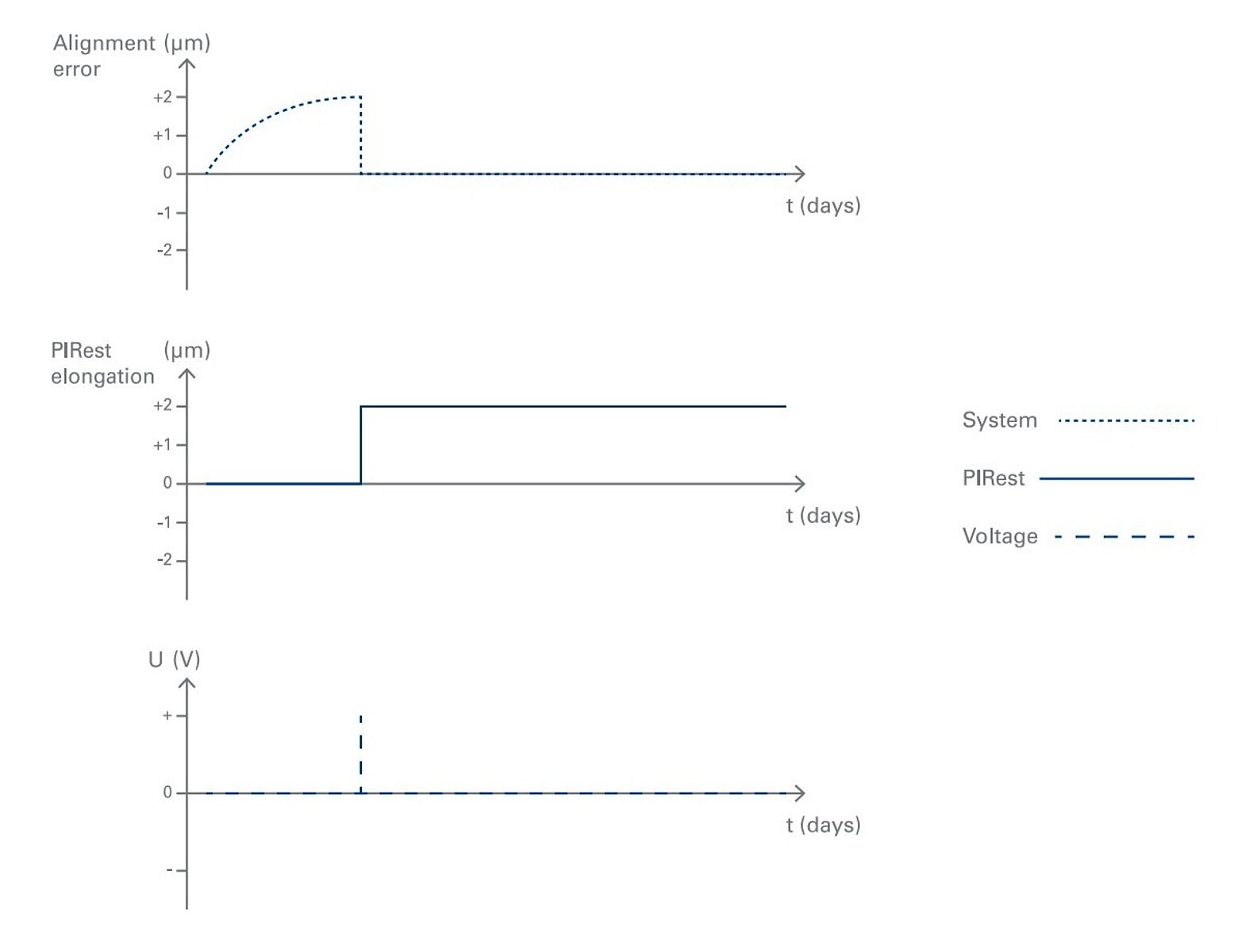 PIRestテクノロジーのベースはピエゾアクチュエータですが、オフセット電圧を印加しなくても、調節後にナノメートルの精度で安定した変位を維持できます。