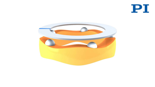 超音波ピエゾモーターには、可動性のガイド付きランナーに対し結合要素を介してプリテンションをかけたピエゾアクチュエータが不可欠です。このピエゾセラミックアクチュエータを100~200 kHzの高周波AC電圧で励起し、超音波振動を生じさせます。アクチュエータが変形することで、結合要素がランナーに対して一定周期で斜めに動きます。生じるフィードは1サイクルあたり数ナノメートルであり、周波数が高いほど速度は大きくなります。
