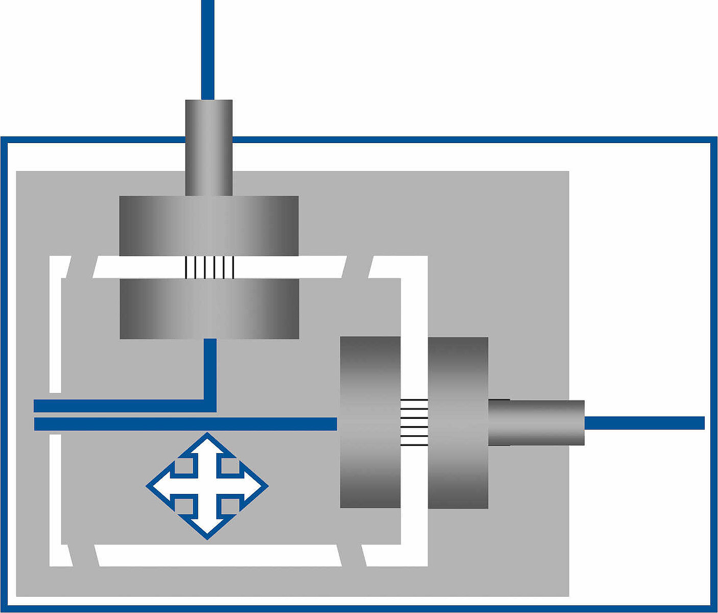 静電容量センサーを高精度位置決めシステムに適切に配置することで、ベース本体に対する移動パーツの実位置を直接的に測定できます(直接測定)。測定結果に動力伝達系、アクチュエータ、レバーアーム、ガイドシステムの誤差が影響することはありません。このため、動力伝達系でドリフトやヒステリシスが発生しても自動的に排除されます。