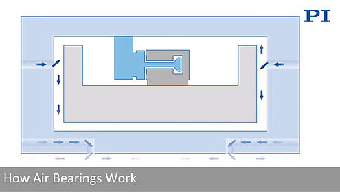 A: ベアリングのサイズによります。PIでは、700N/µm以上の剛性を持つ大型ベアリングも製造しています。 一般的に、エアベアリングの剛性は、メカニカルベアリングとは異なり、非常に予想しやすく線形です。 メカニカルベアリングはより剛性が高いですが、予測ができません。
