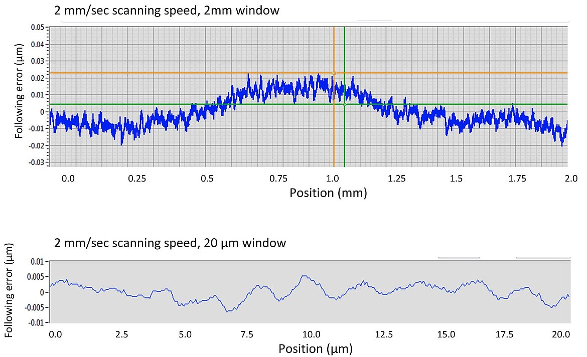 A: 同様のエンコーダーと制御システムを使用した場合、ほとんどの場合、エアベアリングの方がメカニカルベアリングよりもスキャニング性能が優れています。また、エアベアリングのスキャニング性能は、一般的に速度に影響されません(非常に遅いか、非常に速いか)。