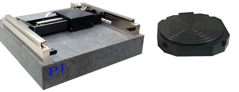 A: ハードコートと呼ばれるコーティングを施したアルミニウムが一般的です。PI社ではステンレス鋼やニッケルメッキ鋼も使用しています。ベアリングの取り付け面や構造体には、グラナイト(花崗岩)がよく使われます。