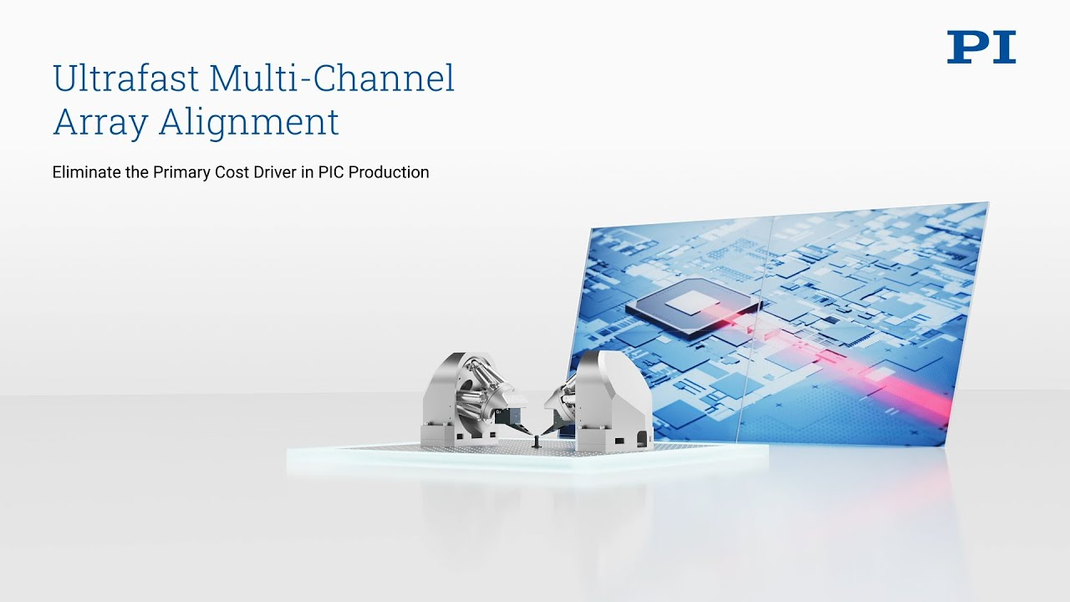 Integrating photonic structures or elements such as waveguides, photodiodes, lasers, and multiplexers presents a variety of demanding challenges to test and assembly processes, starting at wafer level through to final packaging. The common theme: multiple channels, multiple elements, and multiple interacting inputs, as well as outputs, across multiple degrees of freedom, all requiring multiple alignment optimization. Traditionally, this is a time-consuming and expensive task. PI‘s Multi-Channel Photonics Alignment (FMPA) systems and unique proprietary alignment algorithms, which are built into the controller, automatically enable simultaneous alignment across channels, devices, and degrees of freedom, optimizing overall alignment in one quick step. Subsequently, compared to serial operation, reduction of 99 % in time and costs is possible.