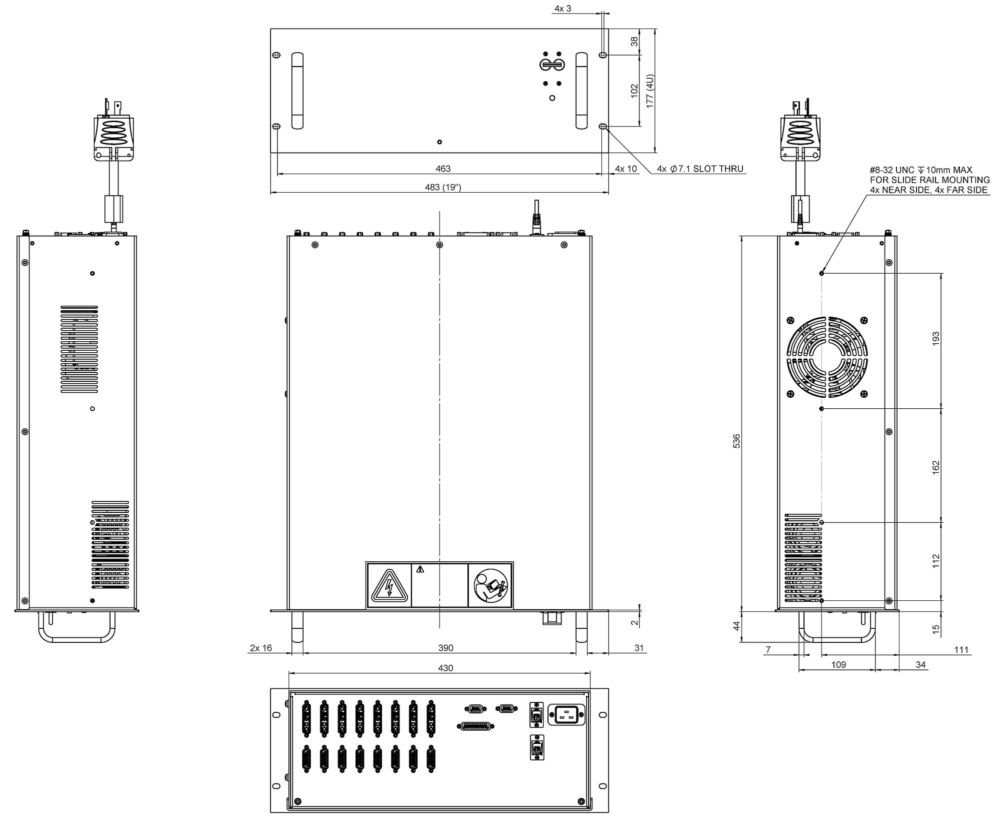 Connector interface | Rear panel connectors D-sub for motor and signal connections IEC 60320 type C20 for power supply (power cord with NEMA L6-20P plug in the scope of delivery) | Rear panel connectors D-sub for motor and signal connections IEC 60320 type C20 for power supply (power cord with NEMA L6-20P plug in the scope of delivery) |