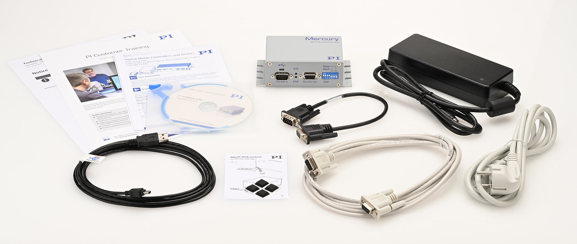 Powerful macro command language. Nonvolatile macro storage, e.g., for stand-alone operation with autostart macro. Data recorder. PID controller, parameter changing during operation. Extensive software support, e.g., for NI LabVIEW, C, C++, MATLAB, Python. PIMikroMove user software.