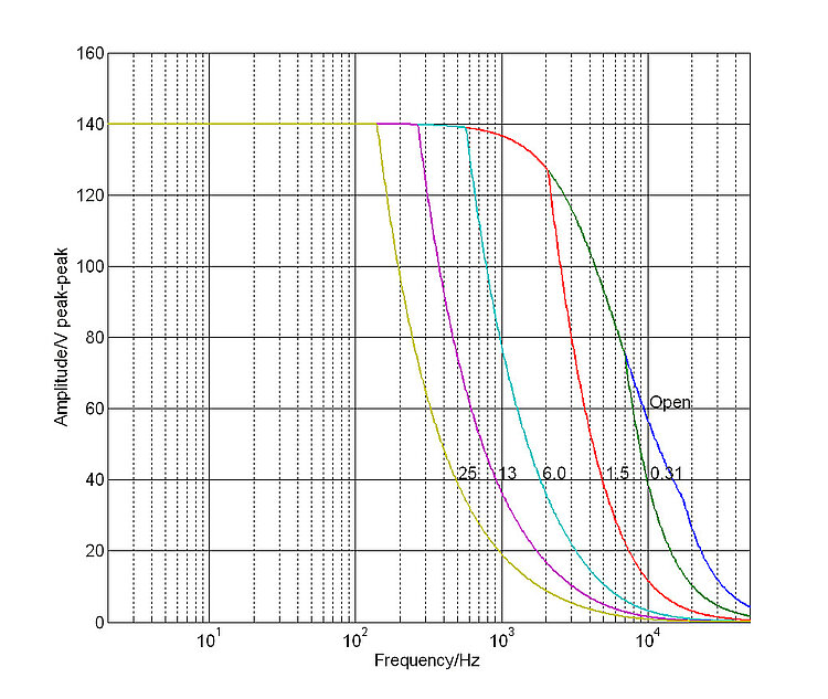Peak power up to 280 W, average output power up to 100 W. Output and absorption of peak current up to 2000 mA. Dynamic operation of piezo actuators with high capacity at a bandwidth up to the kilohertz range.