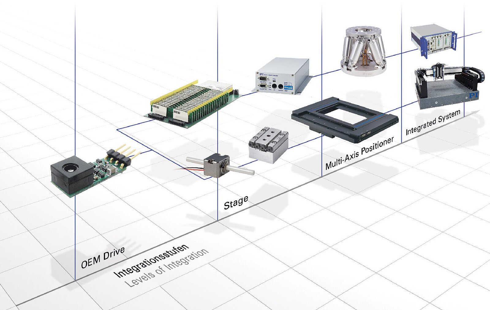 サイエンスであれ製品開発であれ、競争における優位性は、使用するコンポーネントに依存します。PI社の駆動コンポーネント、ポジショナー、システムには「最高水準のテクノロジー」における絶対的なアドバンテージがあるため、弊社製品は差別化を求めるお客様に使用されています。