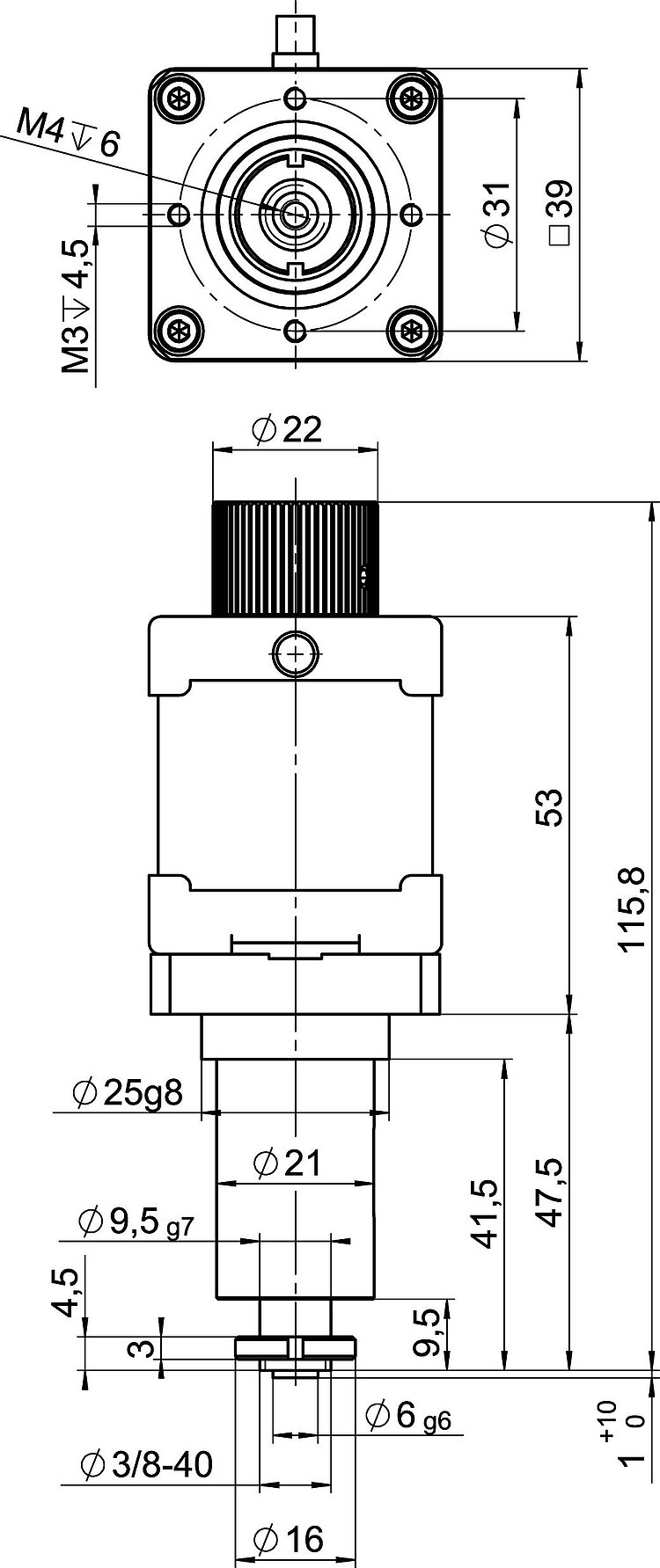 Nonrotating tip for uniform motion prevents wobble, torque, and wear at the point of contact. Noncontact limit switches protect the mechanics. A direction-sensing reference switch supports automation applications. Integrated position indicator. Versions with direct drive include handwheel for manual adjustment.