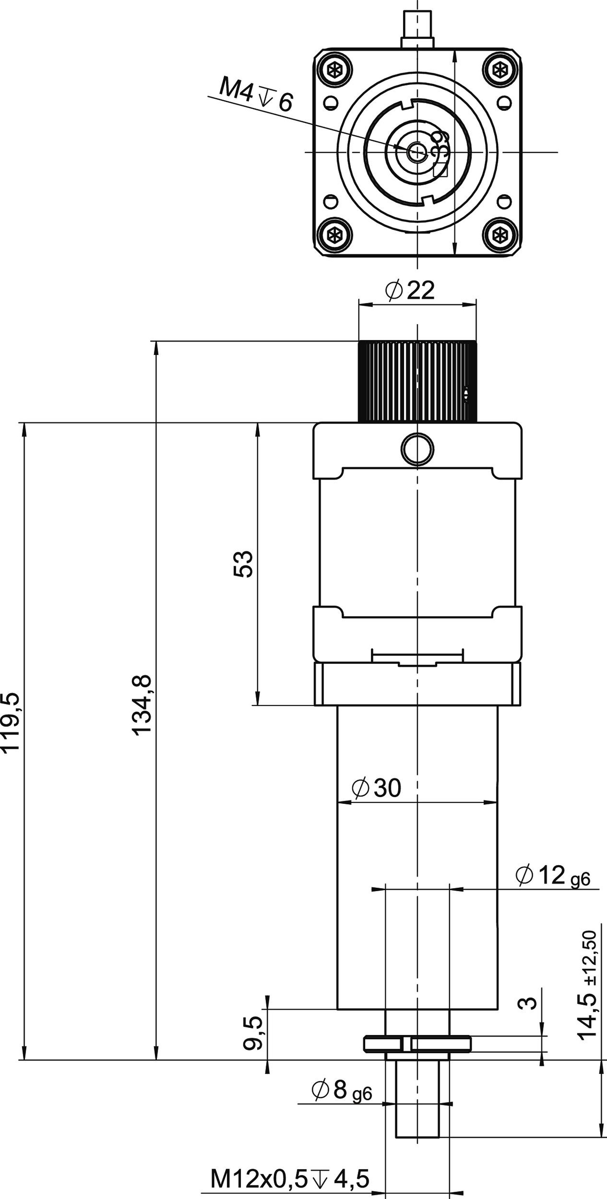 High-resolution linear actuator with stepper motor; 2-phase stepper motor with gearhead; 25 mm travel range; 50 N feed force; 1.5 mm/s maximum velocity; trapezoidal-threaded spindle; limit switches: Hall effect; 0.5 m cable length