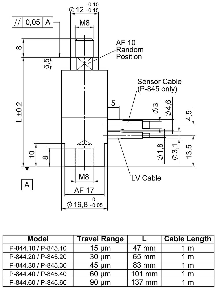 | Positioning | P-844.10 | P-844.20 | P-844.30 | P-844.40 | P-844.60 | Tolerance |