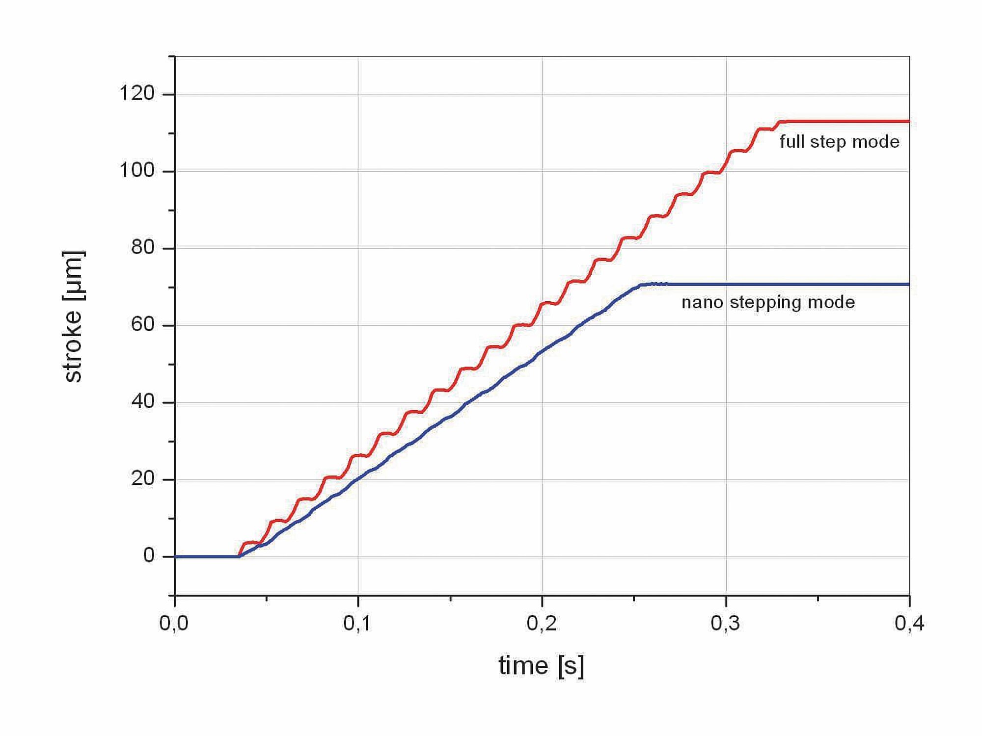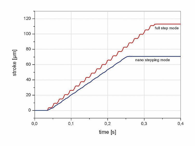 Velocity in nanostepping mode: Depending on drive electronics. The maximum velocity in nanostepping mode is designed for the best possible constancy so that no velocity variations occur when performing the steps.