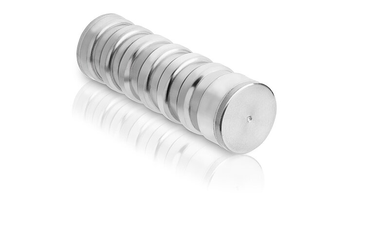 Encapsulated PICMA® piezo actuator, 66 µm travel range, Ø 12.9 mm, length 44.4 mm