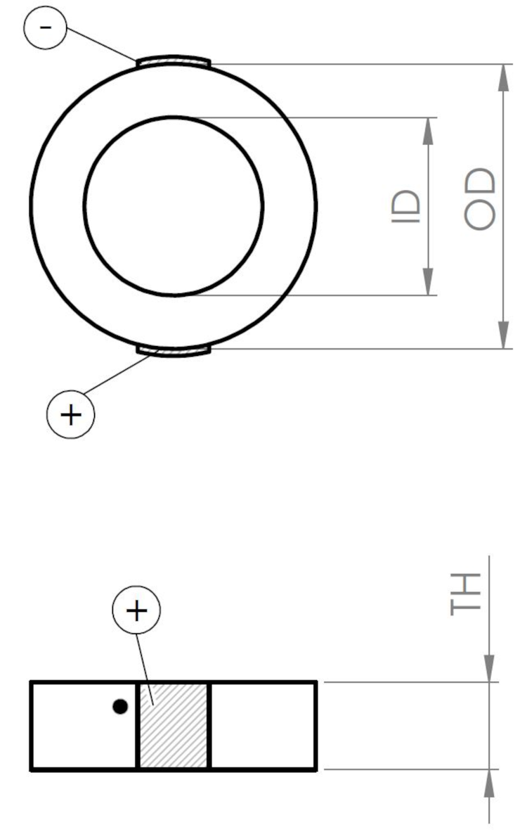 Round PICMA® Chip miniature piezo actuator with inner hole, 2.0 µm travel range, OD 16 mm × ID 8 mm × TH 2.5 mm