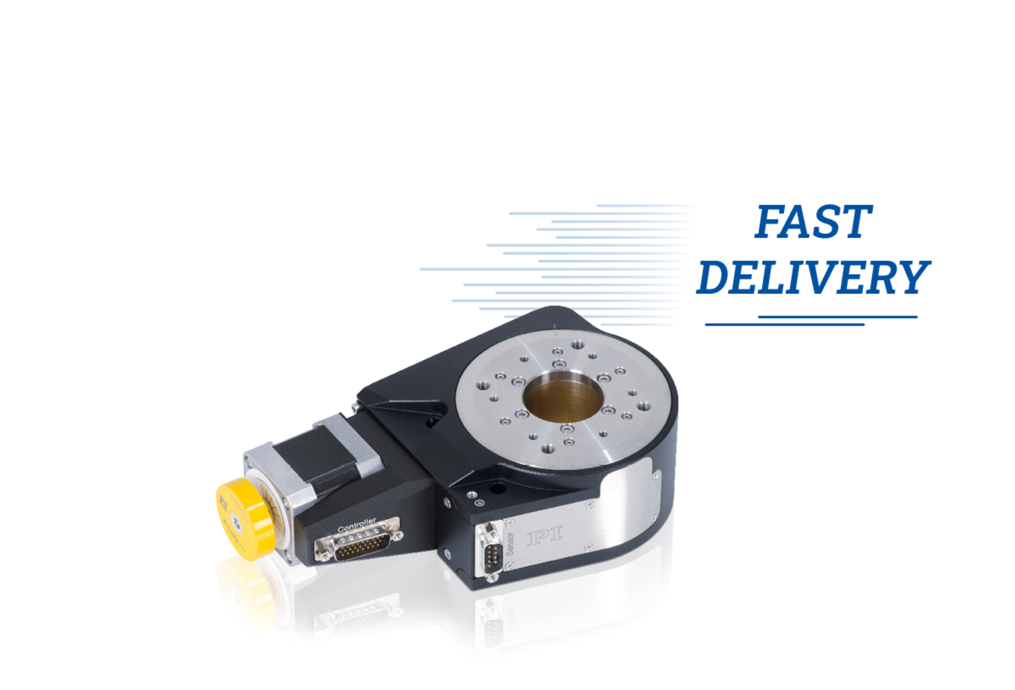 Precision rotation stage; brushless DC motor; 360° rotational angle; 100 N load capacity; 200 °/s maximum angular velocity; incremental rotary encoder, 20000 cts./rev. sensor resolution, A/B quadrature, RS-422; 35 mm Ø aperture