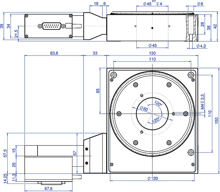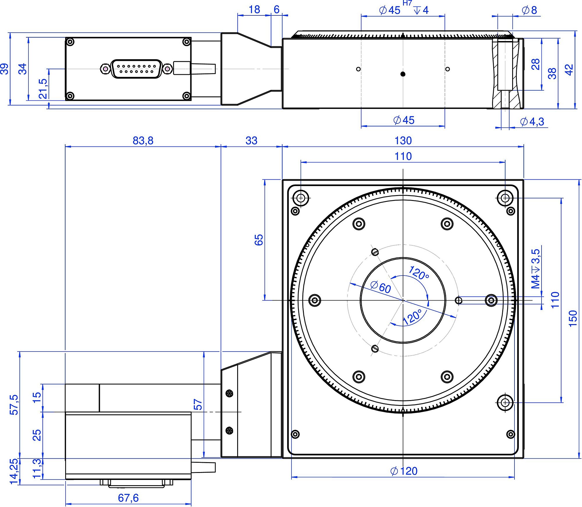 Precision rotation stage, Ø 120 mm, 45 mm Ø aperture, 360°, closed-loop DC gear motor