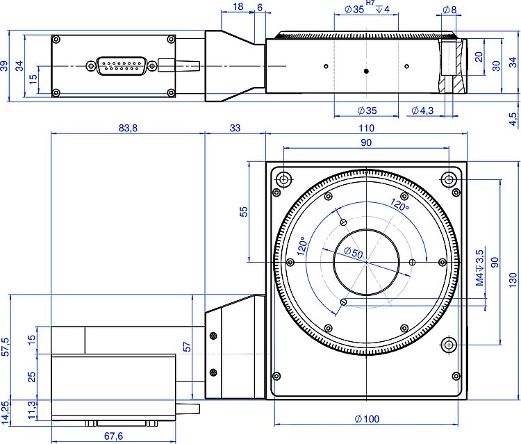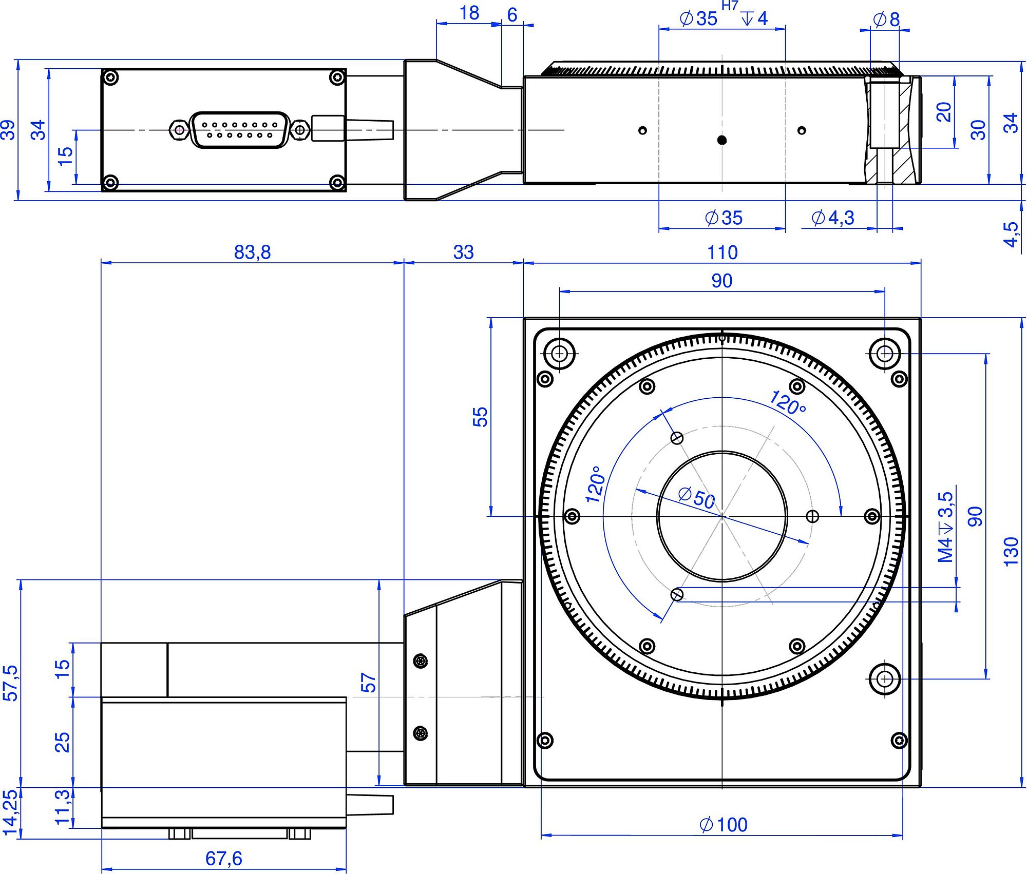 Precision rotation stage, Ø 100 mm, 35 mm Ø aperture, 360°, closed-loop DC gear motor