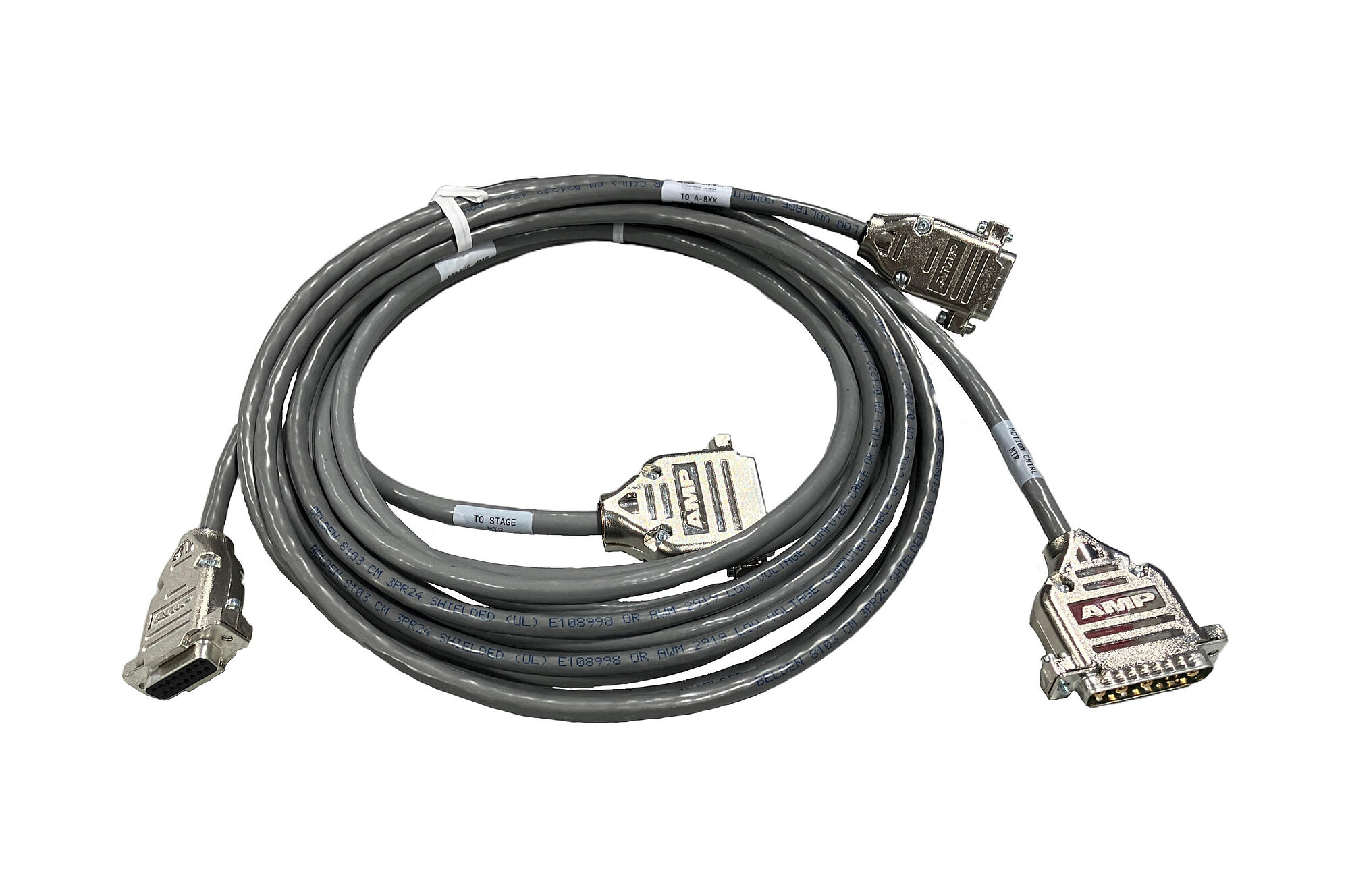 Cable set for A-143 PIglide positioners; for connecting to A-81x, A-82x controllers; drive and sensor cables, signal for motor brake, sensor signal BiSS-C 32 bit serial, D-sub 15 (m), D-sub 15 (f); adapter; 3 m