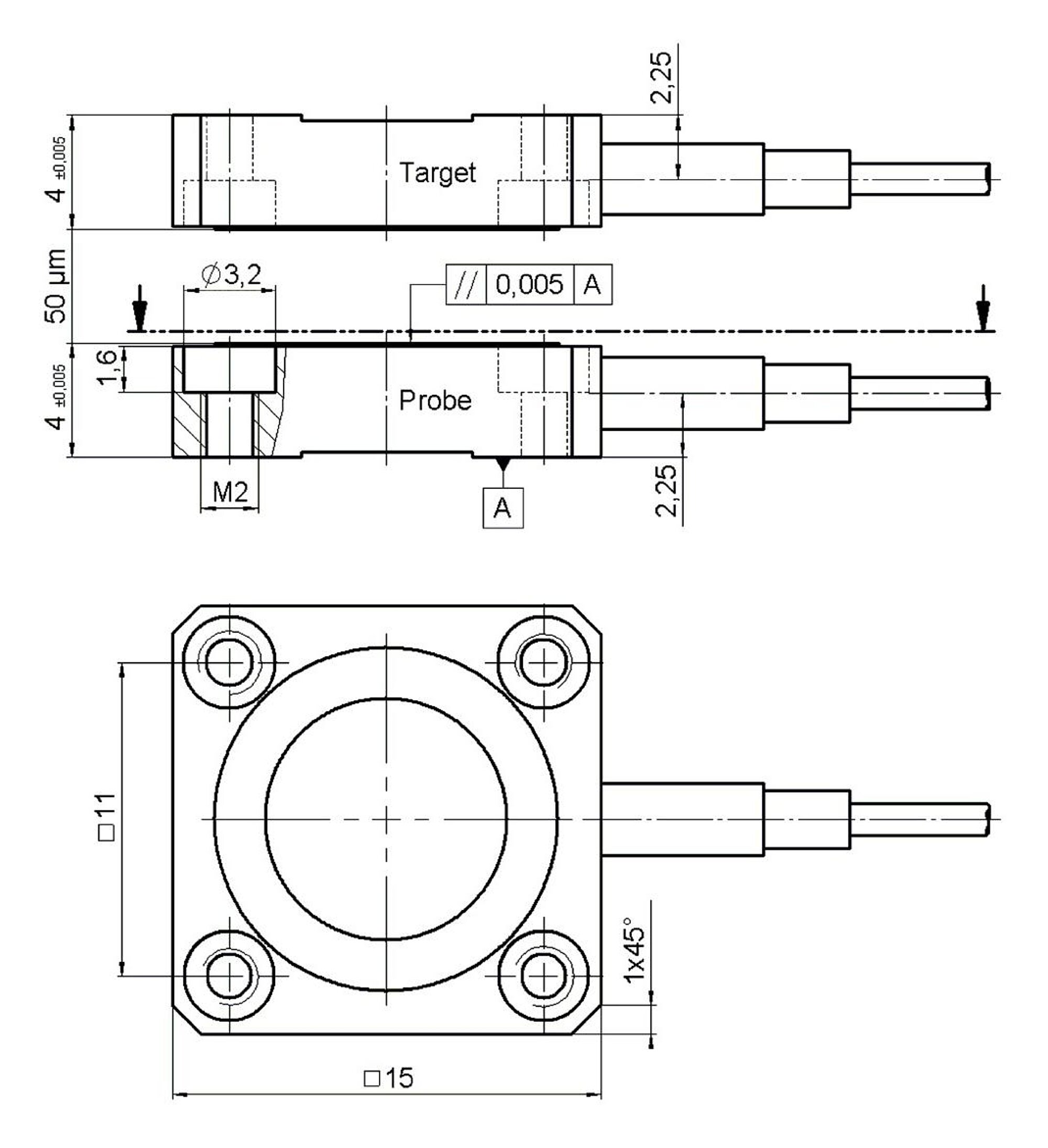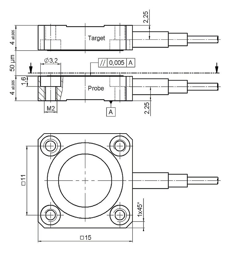 Capacitive two-plate position sensor, 50 µm nominal measuring range, aluminum