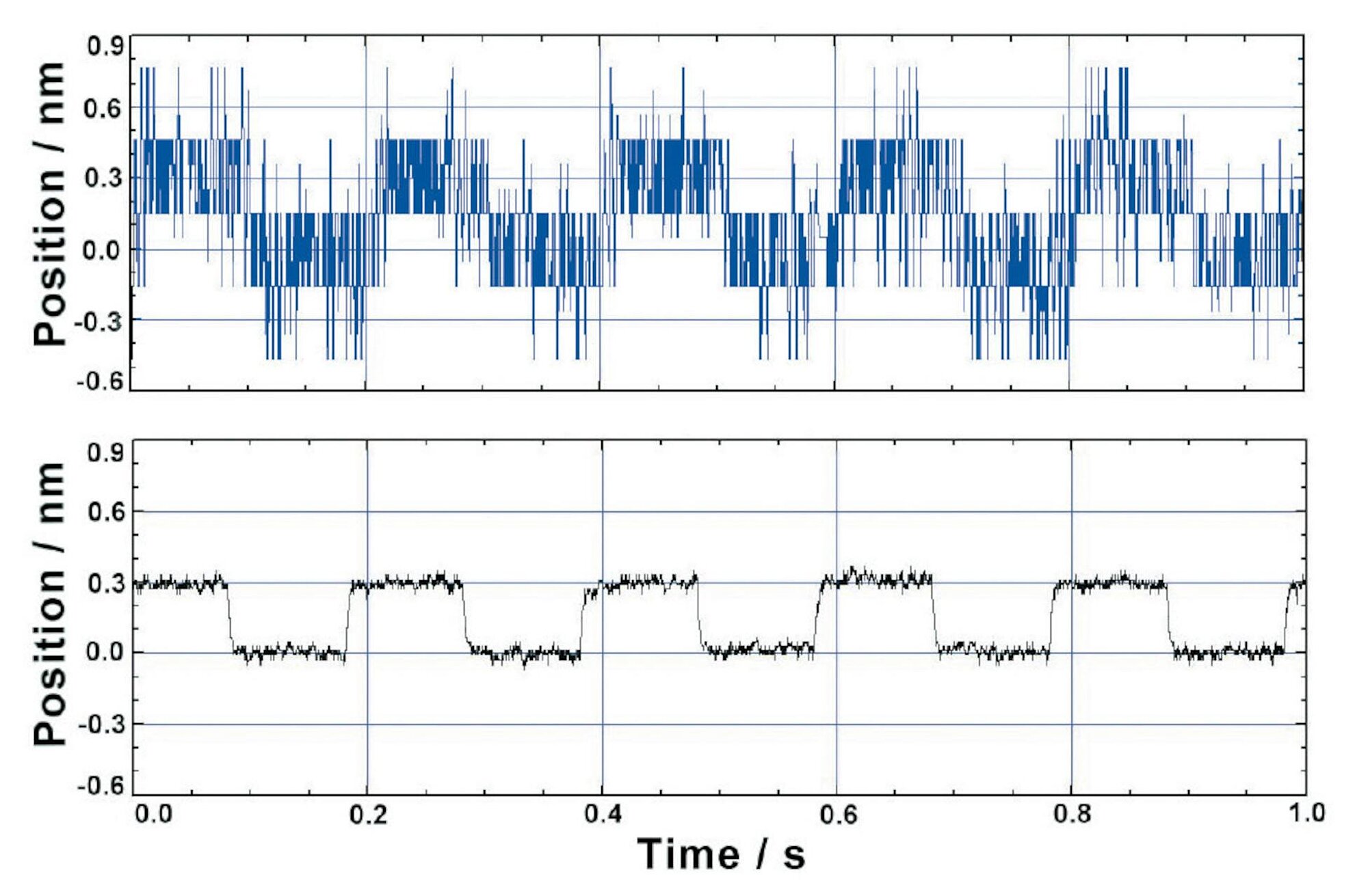 Capacitive sensors achieve resolutions into the picometer range over shorter distances. The theoretical measuring resolution is unlimited. In practice, scatter radiation, geometrical effects, and the measuring electronics noise influence the achievable accuracy. In conjunction with the E-509.C1A electronics, the effective noise factor of the D-100.00 sensors (100 µm) is 0.02 nm/√Hz. Corresponds for example, to a resolution of 0.2 nm with 100 Hz bandwidth. The jumper-adjustable bandwidth of the electronics is up to 3 kHz.
