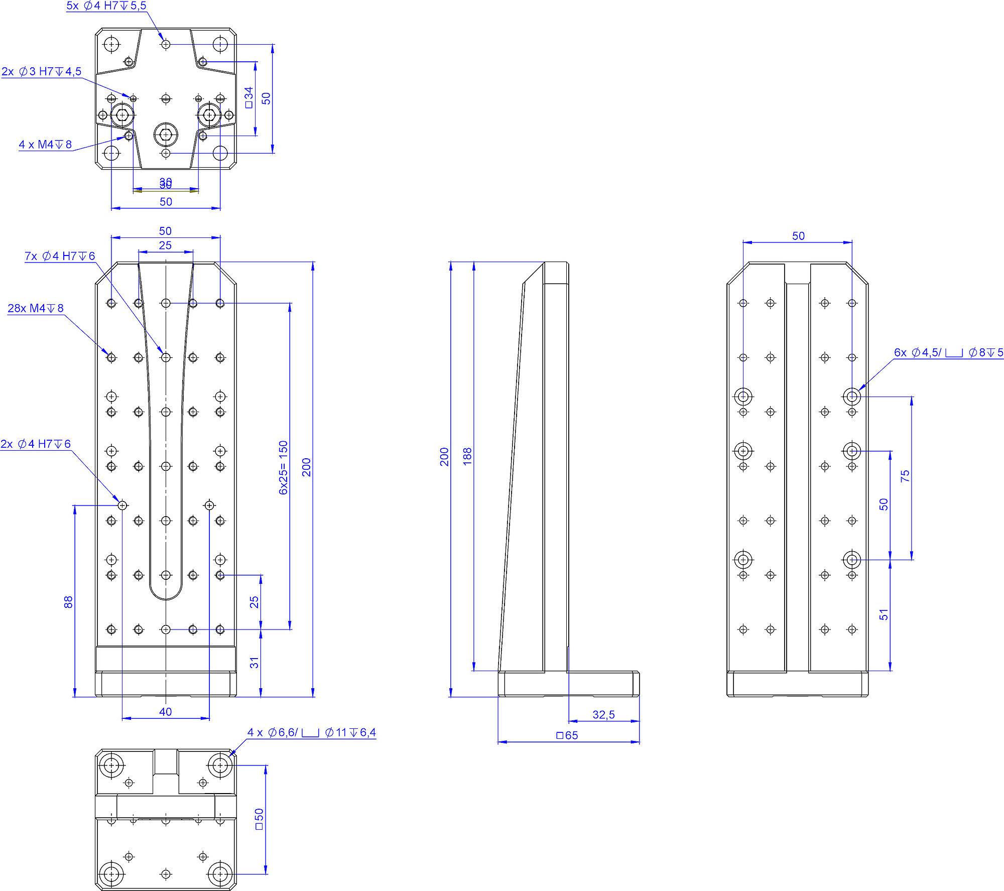 Adapter bracket for vertical mounting of positioners with up to 100 mm width and 300 mm length, vacuum compatible to 10-6 hPa