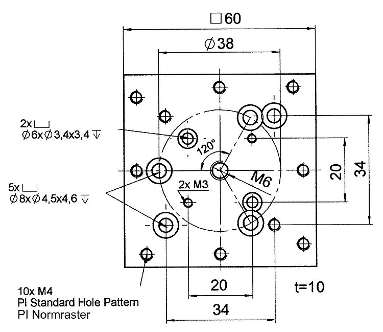 Adapter Plate for Mounting Stages without PI-Standard Hole Pattern on Stages with PI-Standard Hole Pattern