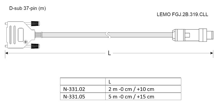 Adapter cable, LEMO 19-pole (f) to D-sub 37 (m), 2 m