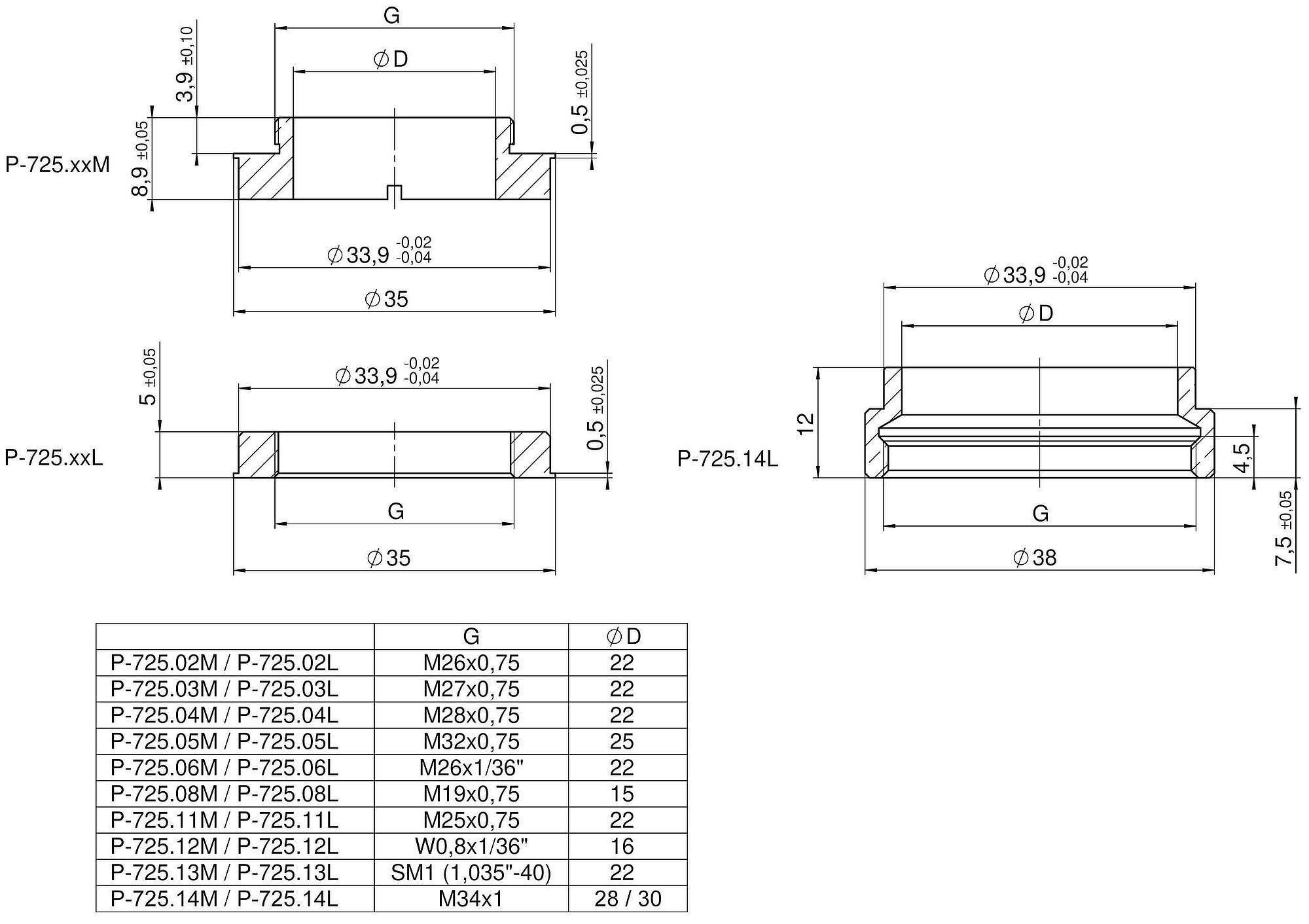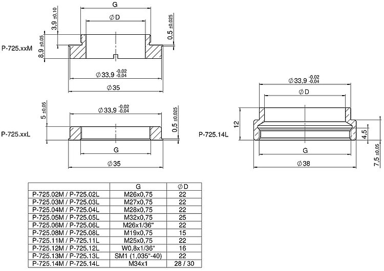 P-725.xM • P-725.xL • P-725.xS Thread Adapters for PIFOC Focus Scanners