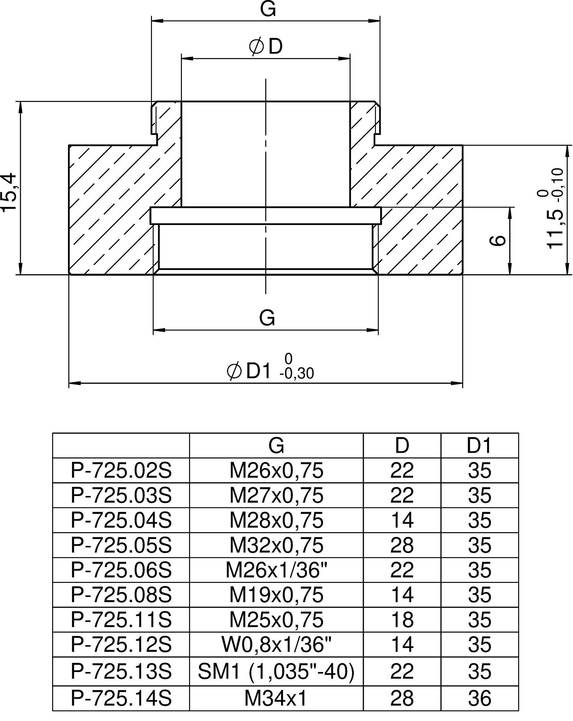 Thread adapter for microscope, M25 x 0.75, aperture diameter 22 mm