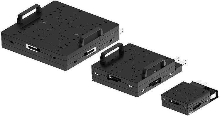 The monolithic XY linear stages of the V-781 family are designed for accuracy, precision, low maintenance, and ease of use. They offer a more compact design and, thanks to their wider base, better straightness, less yaw, and greater rigidity than stacked systems consisting of two individual linear tables.